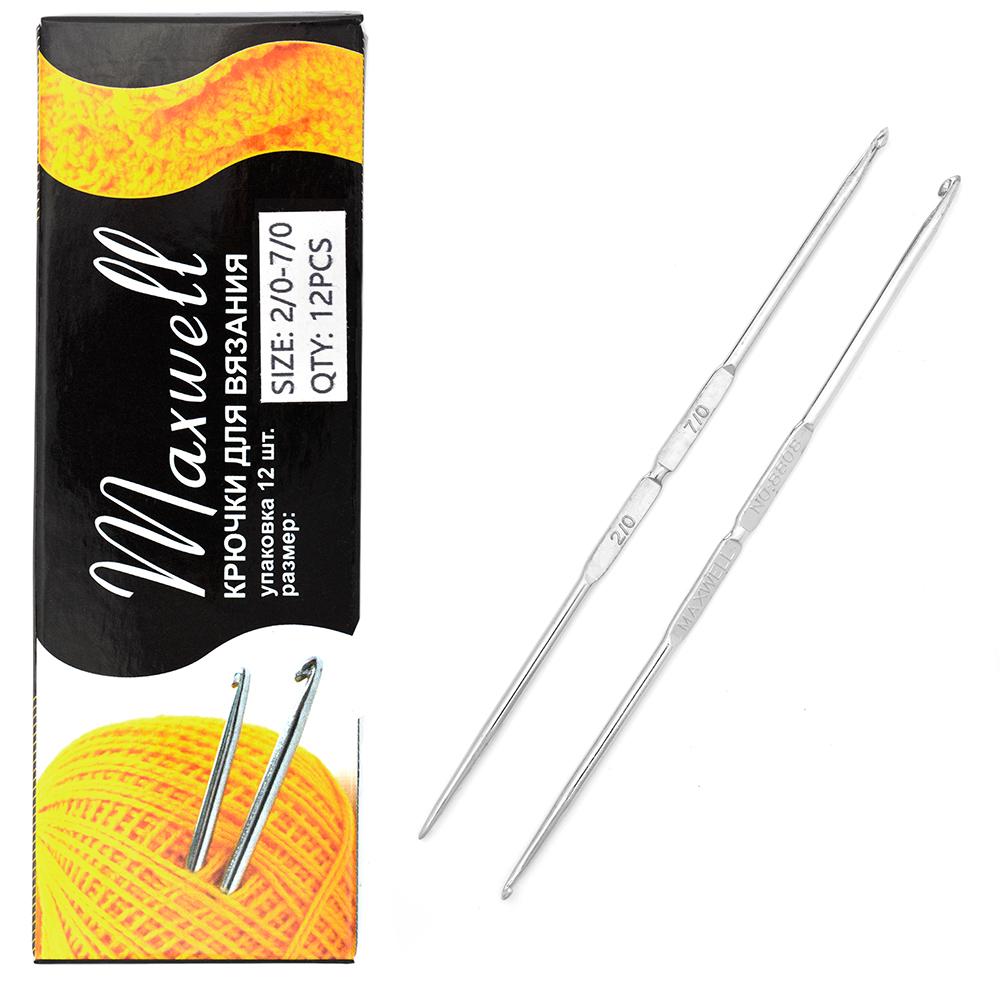 Крючки для вязания ТВ-СН-01 №2/0-5/0 2.1мм-2.7мм 12шт двухсторонние никель MAXWELL |