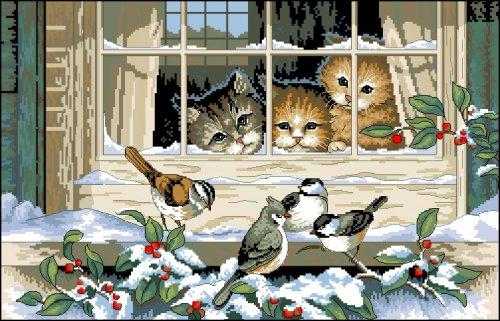 Канва с рисунком Ф-045 Котенок с птичкой 43, 5х43, 5 см, 580316 |