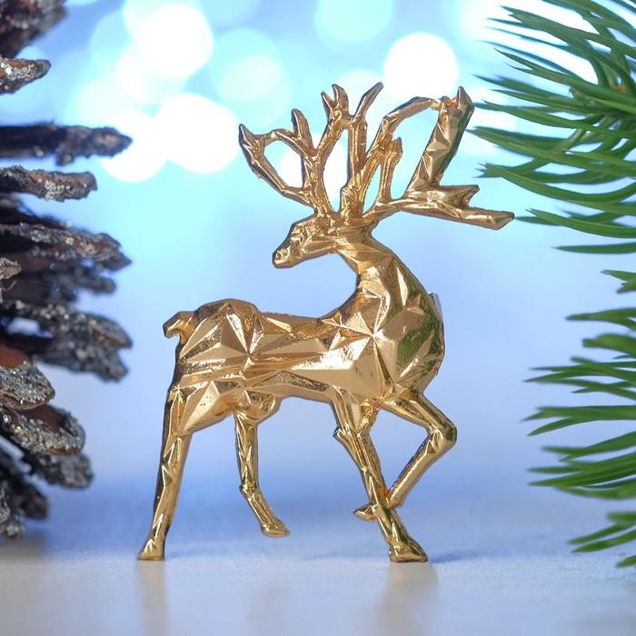 Брошь новогодняя Олененок с подарком 3х2.5см цветная в золоте 7842295 |